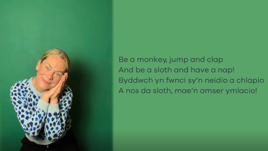 “Dwi wrth fy modd o fod wedi cyfansoddi rhigwm symud dwyieithog newydd ar gyfer Amser Rhigwm Mawr Cymru. Dewch i ni baratoi am rywfaint o hwyl wrth rigymu!”